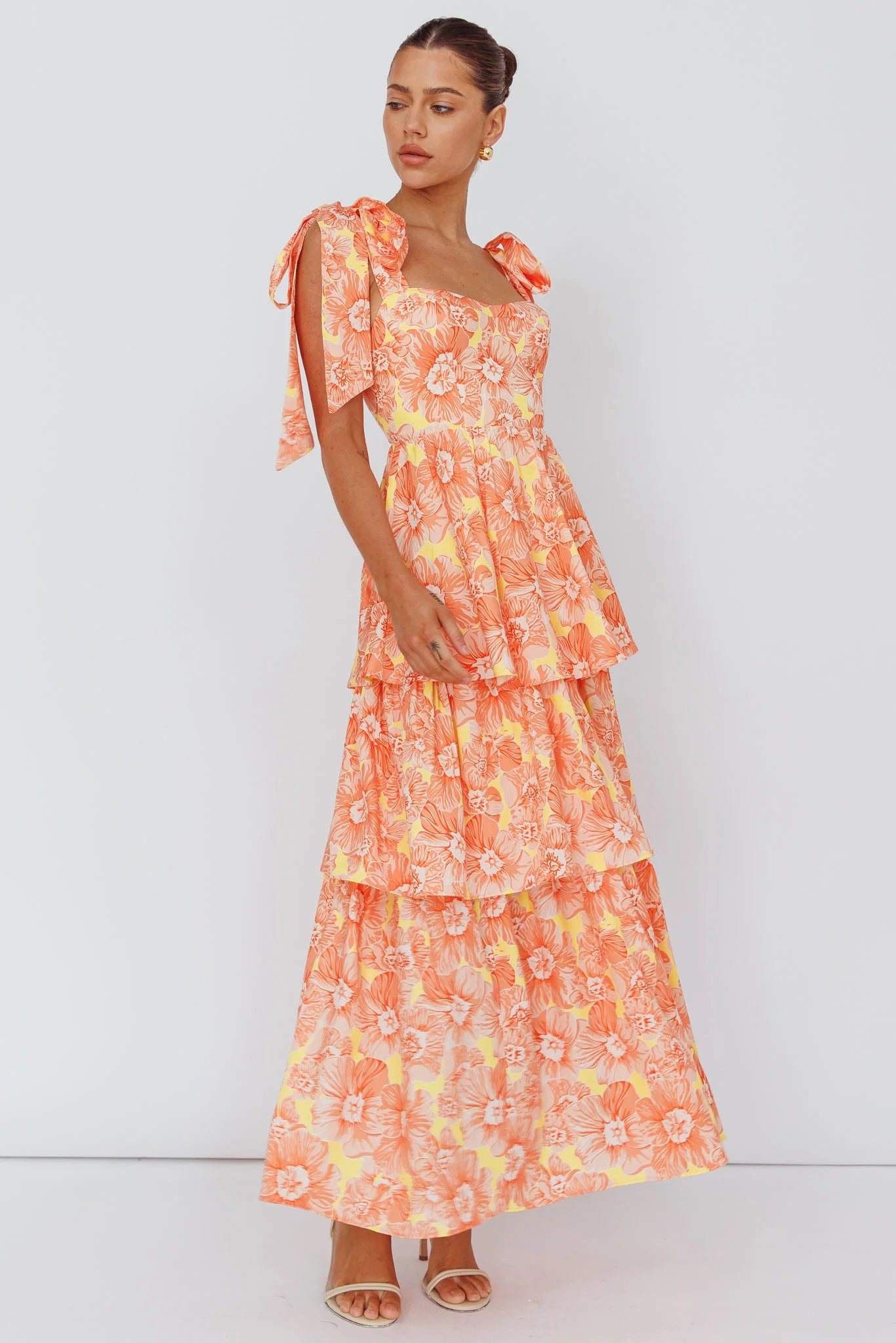 Make a statement in our pretty Arlowe dress. Featuring girly, tied shoulder straps and the cutest tiered layers in the body, it's perfect for weekend lunch dates with your besties. Team it with tan mules and a tote for a look that'll turn heads.