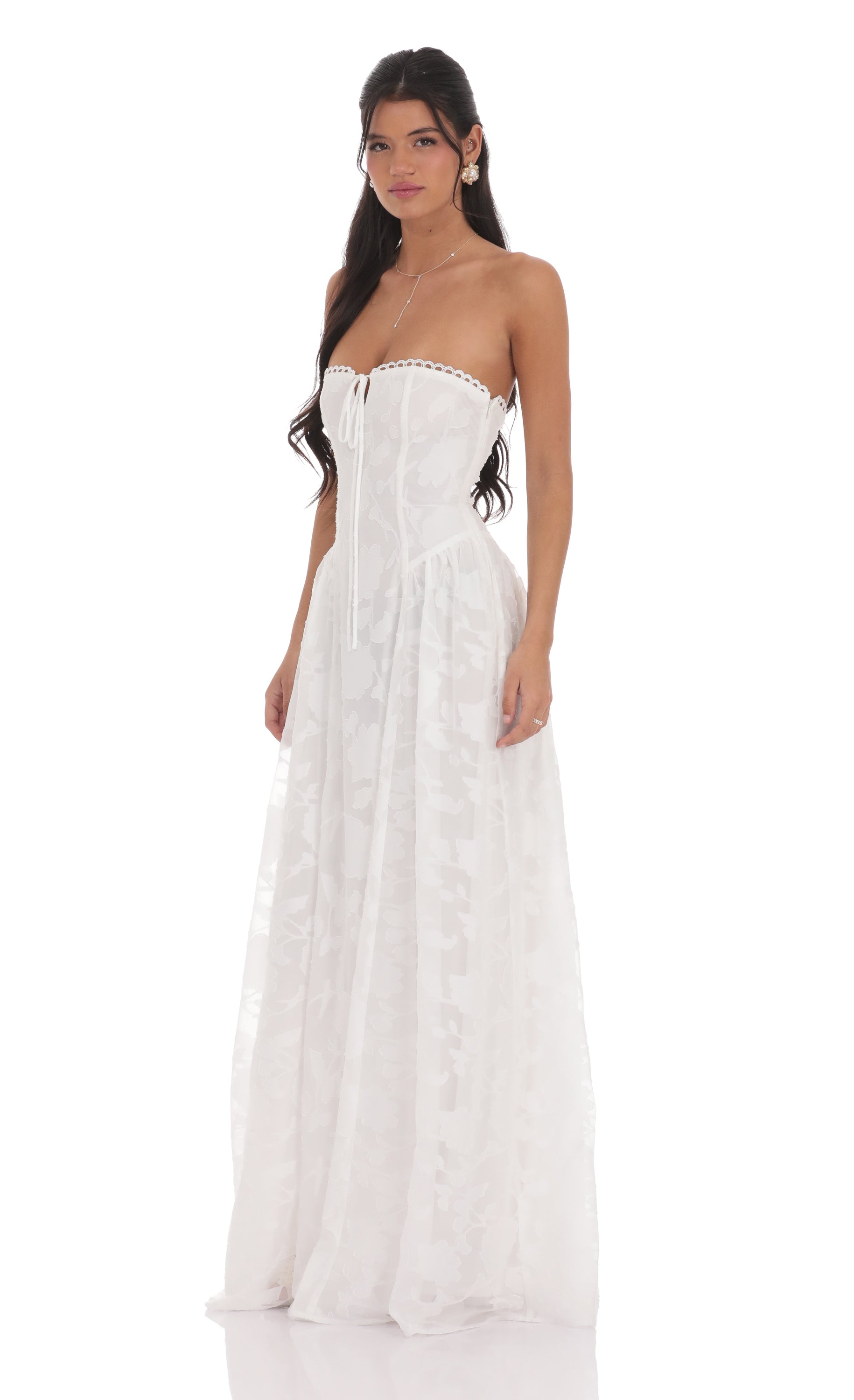 - Zipper and back tie closure