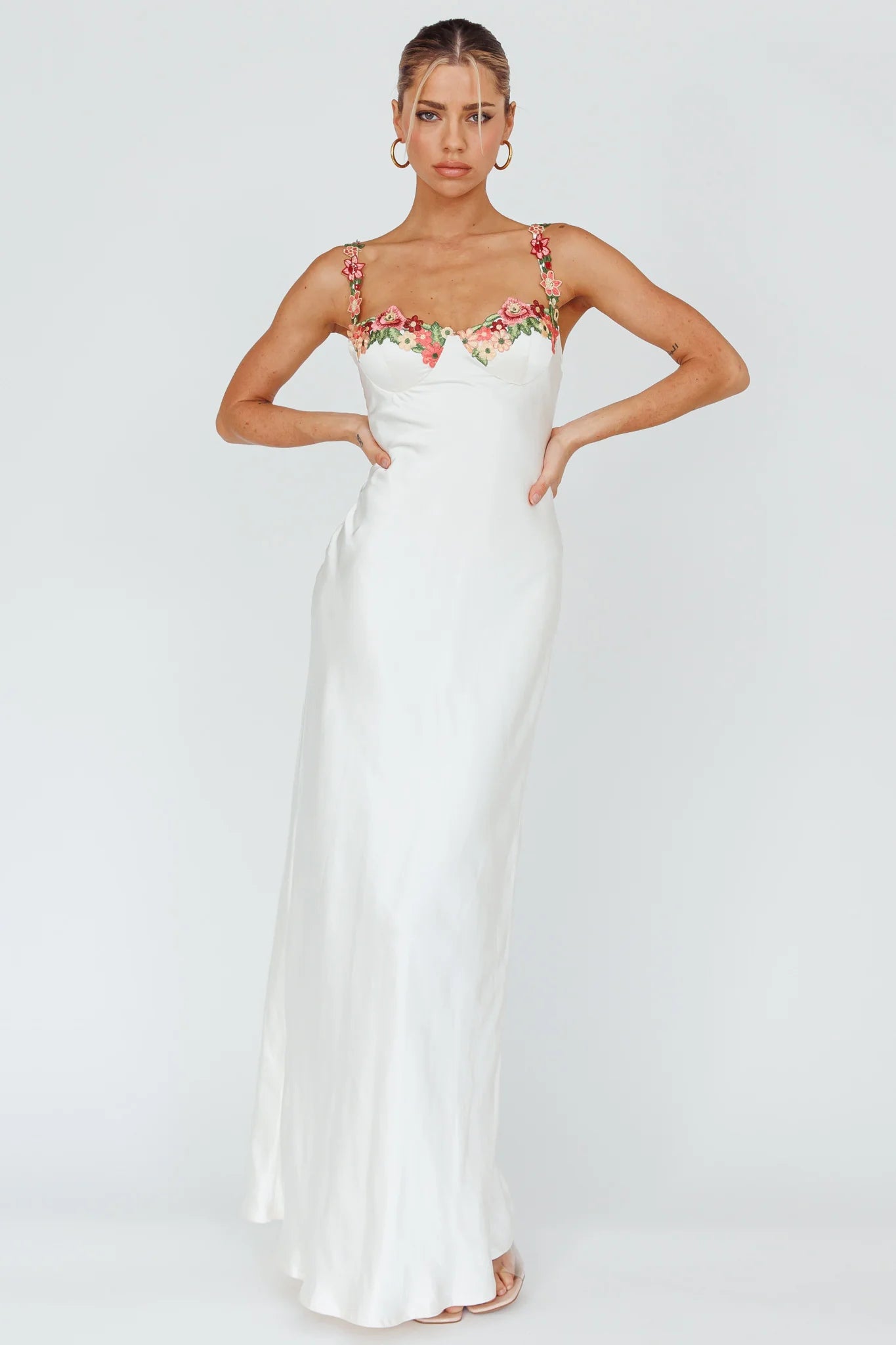 Heads will turn when you walk by in our gorgeous Rose Garden midi dress. We are in love with its pretty floral applique trim! Perfect for bridal events or a birthday celebration. Team it with mules and a clutch for a romantic look we are loving.