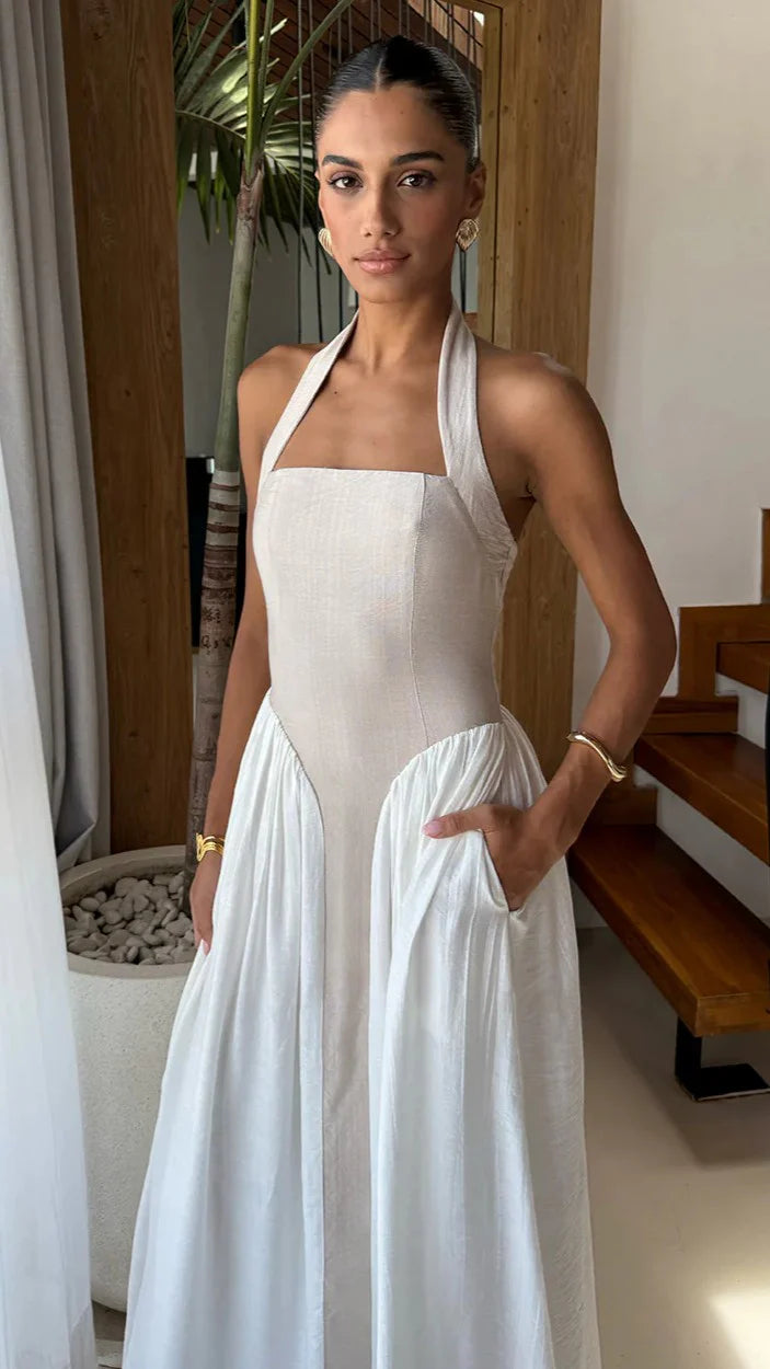 The Sammi Halter Midi Dress combines timeless elegance with refined simplicity. This sophisticated piece features a flattering halter neckline and midi length, creating an effortlessly polished silhouette. The centre back invisible zipper ensures a seamless finish, while the lined, non-stretch fabric provides structure and comfort.