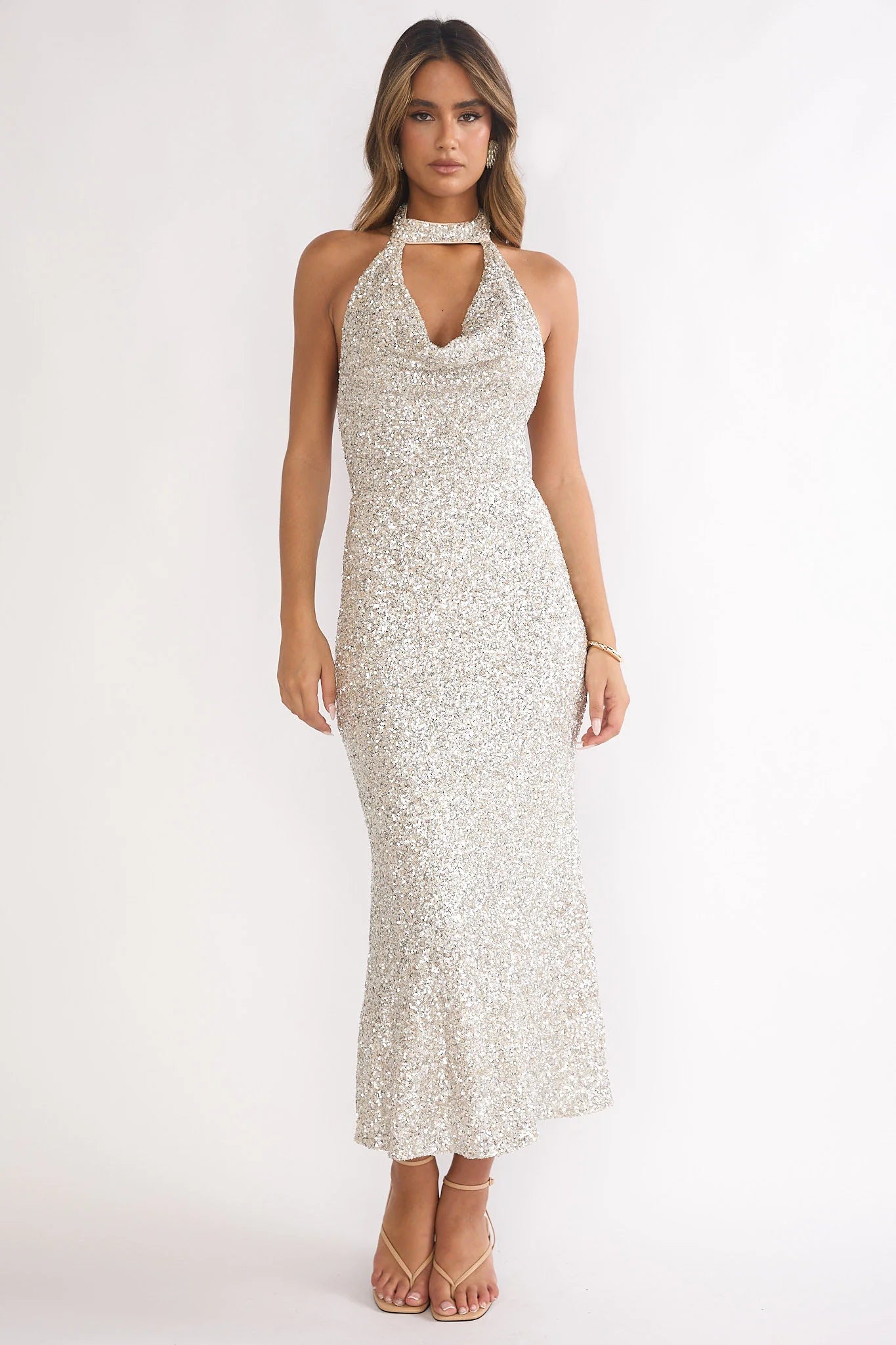 Make them stop and stare in our gorgeous Sky Of Diamonds midi dress. It features stunning sequins throughout and a backless design. It's perfect for a glam holiday party or special event teamed with silver heels and a clutch for a hot look.